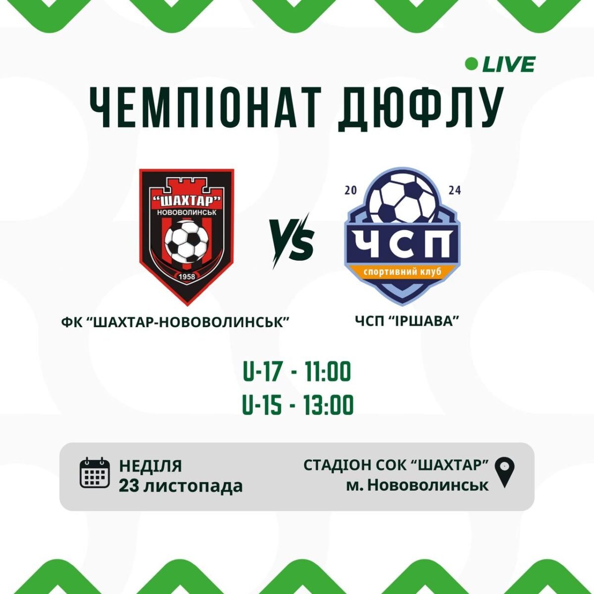 У Нововолинську зіграють матчі 15-го туру ДЮФЛУ
