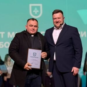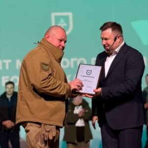 Капелан-доброволець ради церков «Скинія» Павло Гаврилюк вручив голові громади відзнаку командира 1039 зенітного ракетного полку імені генерал-хорунжого Миколи Капустянського за підтримку військових.