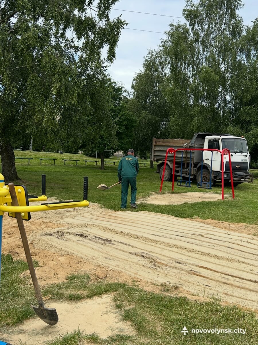 У Нововолинську тривають роботи з підтримки комфорту та безпеки міської інфраструктури. Фахівці Виробничого управління комунального господарства (ВУКГ) провели оновлення піщаного покриття на дитячому майданчику біля міського озера.
