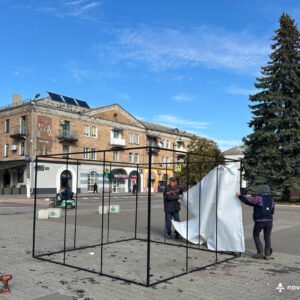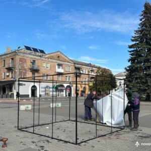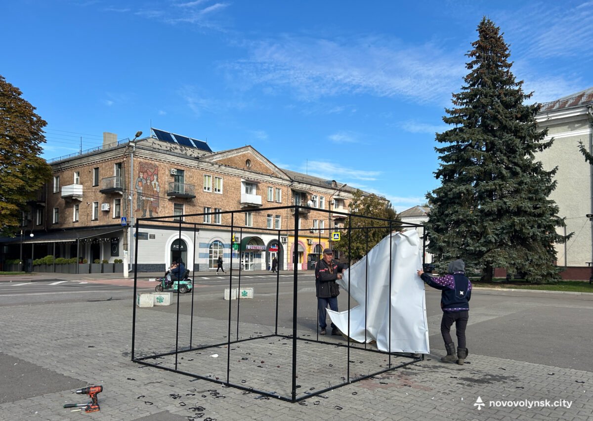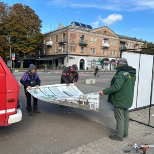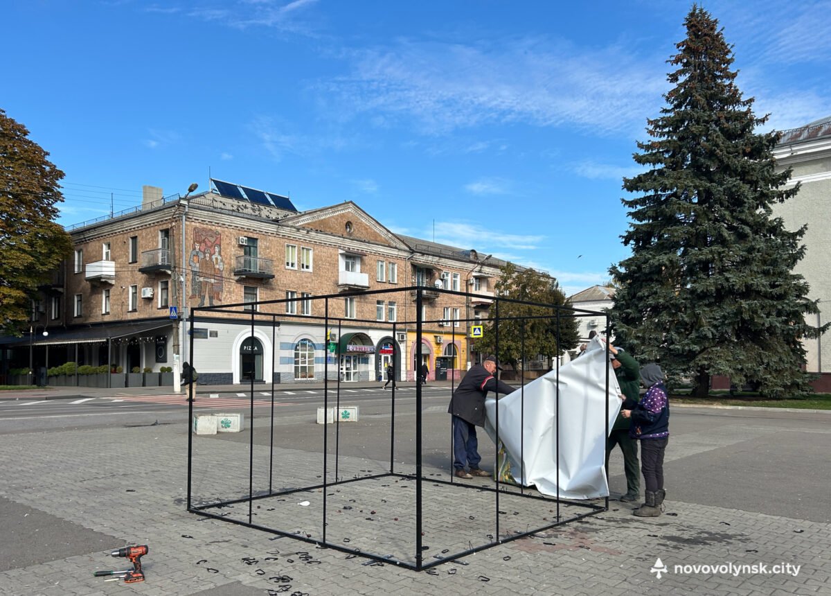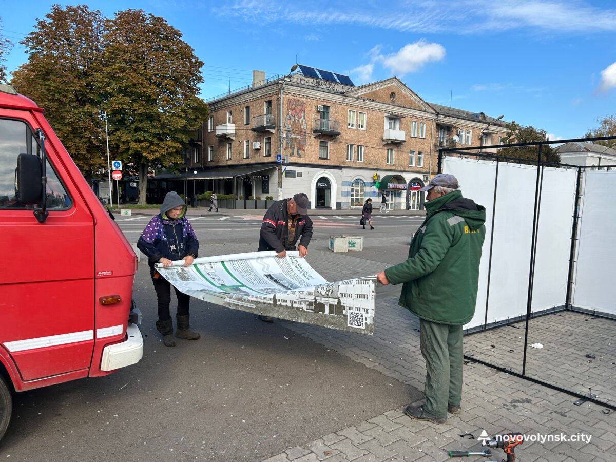 На Майдані Незалежності працівники Виробничого управління комунального господарства Нововолинської міської ради провели демонтаж історичної інсталяції з ретрофотографіями, встановленої до 75-річчя міста.