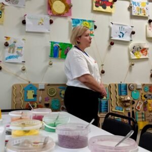 Далі всі присутні оглянули приміщення, кабінети, поспілкували з фахівцями – логопедом, реабілітологом, психологом, соціальними працівниками та керівницею Центру соціальних служб Юлією Янюк. Кожен із них не лише розповів про свою роботу, а й продемонстрував, як проходять майстеркласи, заняття з реабілітації тощо.