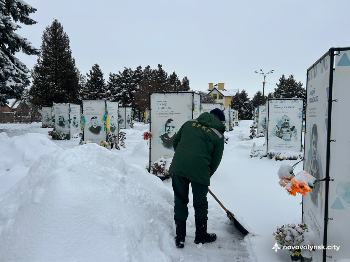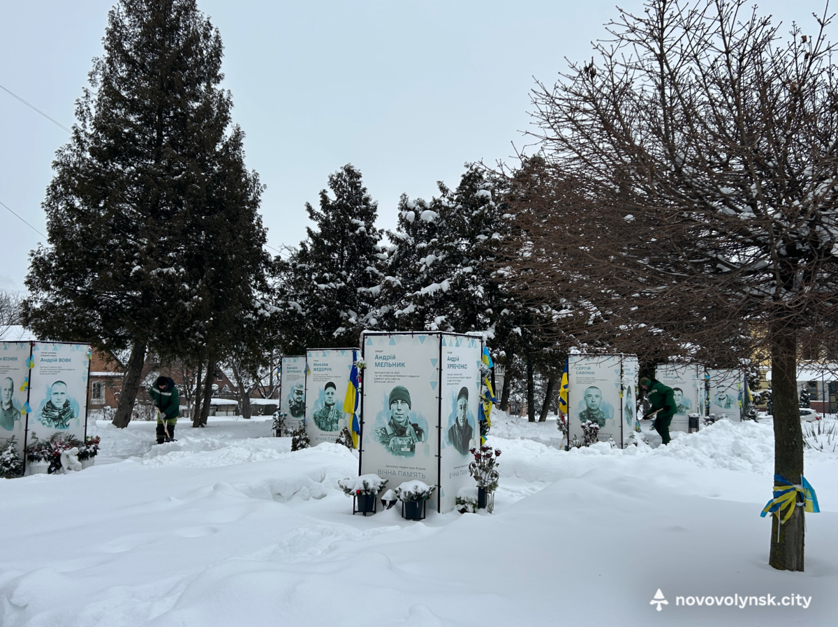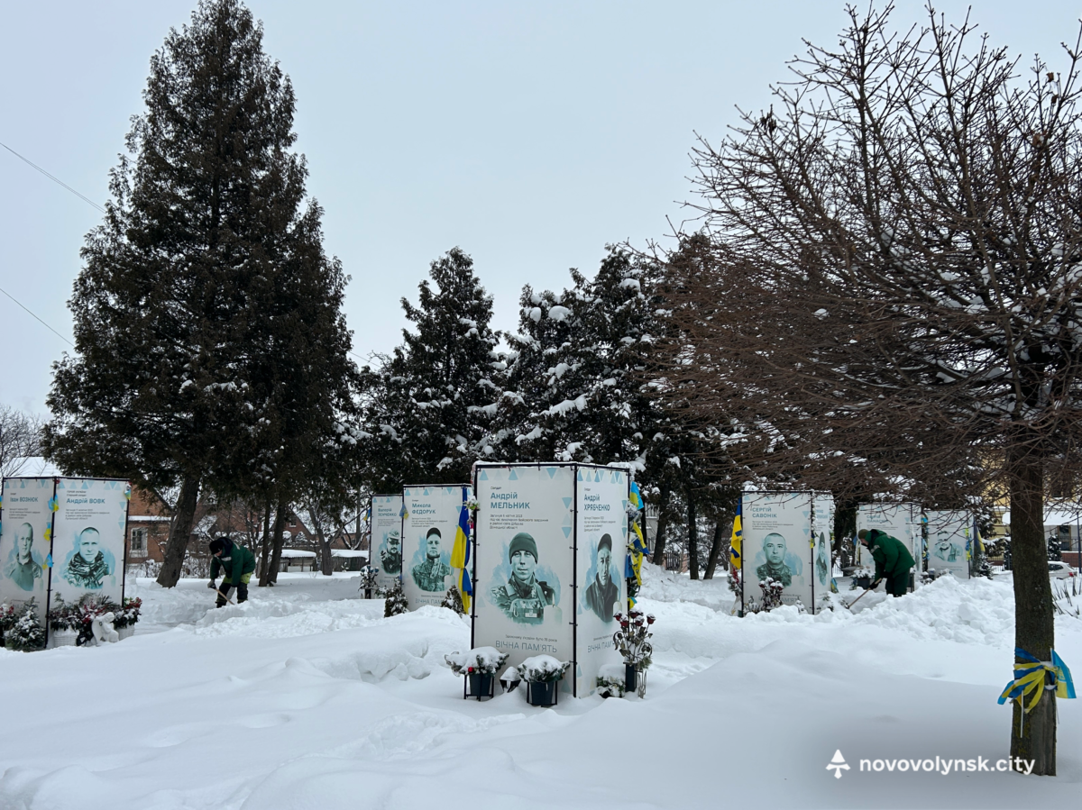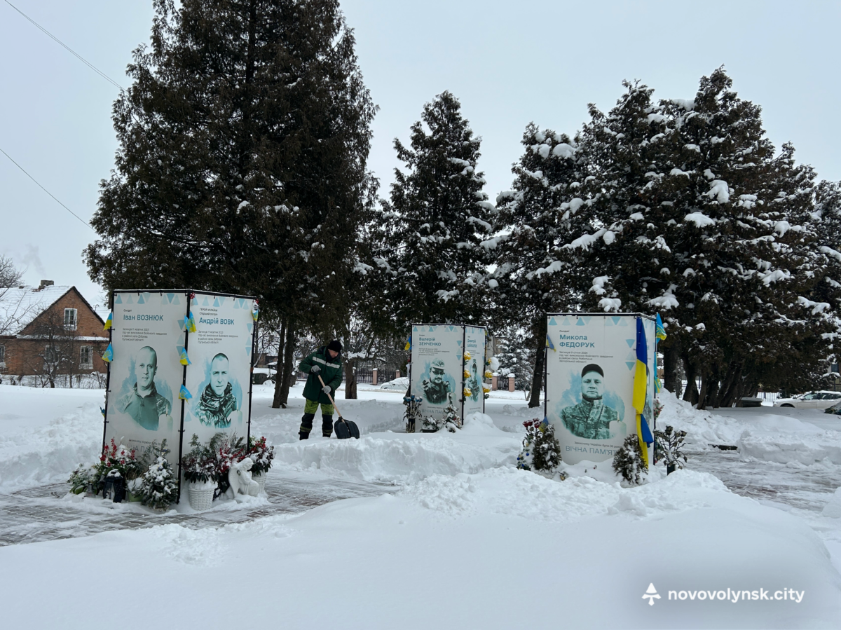 Працівники Виробничого управління комунального господарства Нововолинської міської ради виконали ручне очищення Алеї Героїв від снігу.
