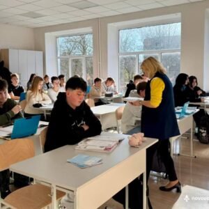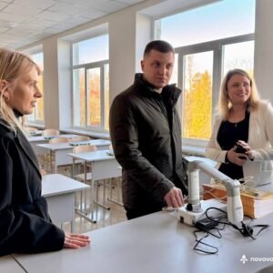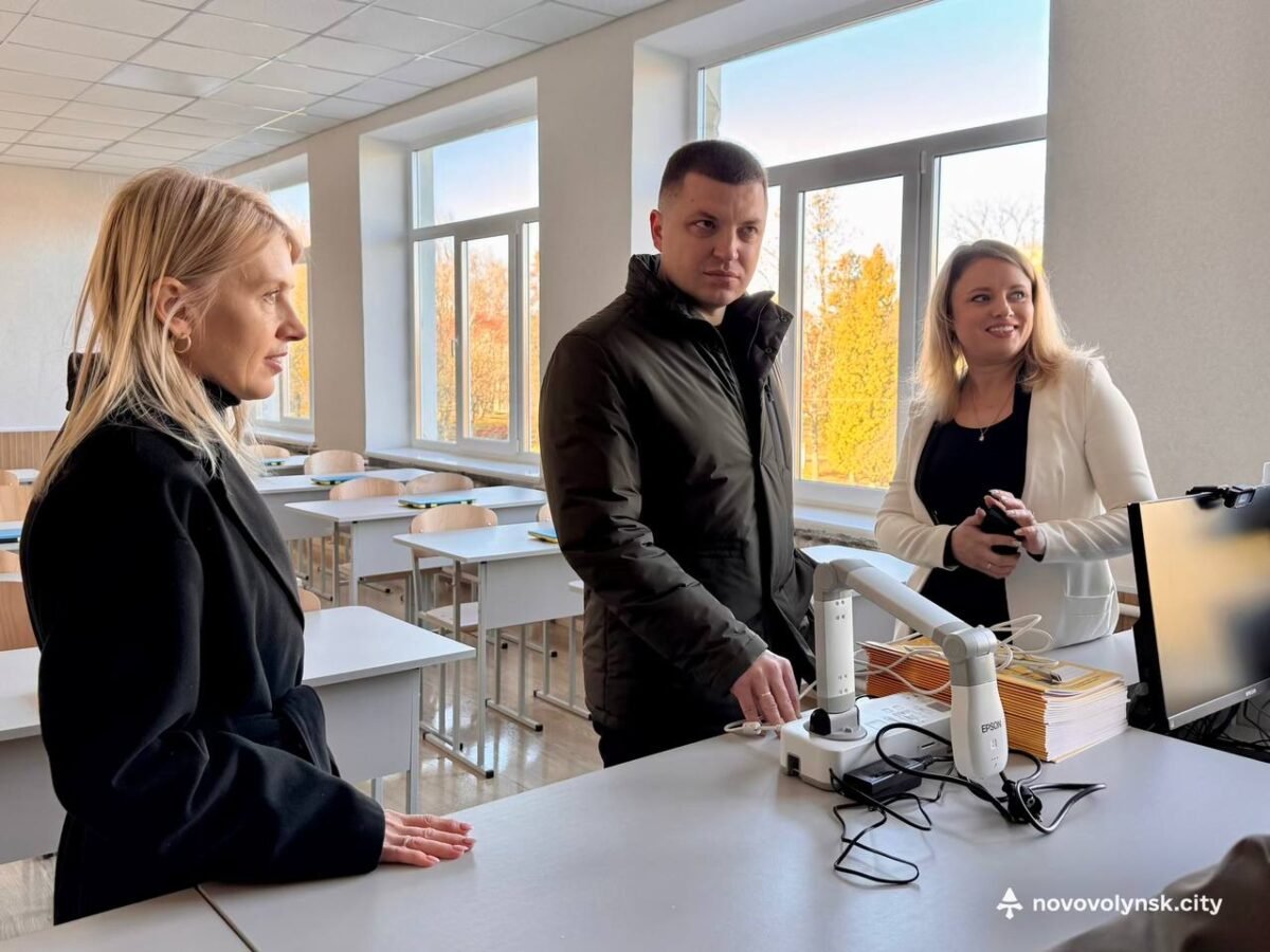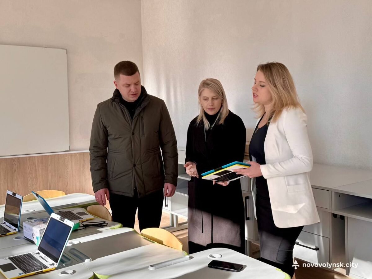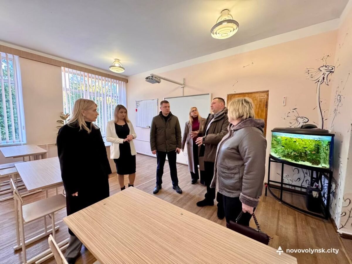 Далі делегація побувала у Нововолинському ліцеї №8, де ознайомилася із сучасним освітнім простором: STEM-лабораторією, кабінетами математики, географії, біології та хімії.